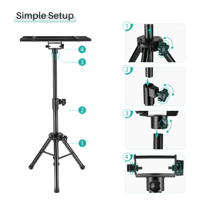 Thiết lập di động & dễ dàng: Thiết kế trục xoay mới 180° giúp bạn có thể trình chiếu dễ dàng từ mọi góc độ. Chân máy có thể gập lại hoặc gấp vào trong giúp bạn có thể đặt nó vào một góc tùy ý không chiếm nhiều diện tích mà vẫn đạt hiệu quả. Đi kèm với hướng dẫn cài đặt, PT-30 có thể dễ dàng lắp đặt trong vài phút.